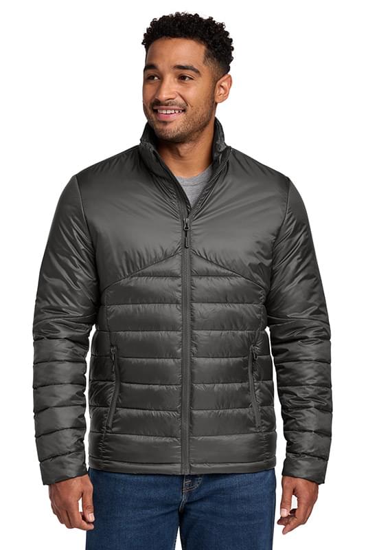 Minimal bulk meets maximized performance in this quilted jacket that is built for your cold-weather adventures. Exposed, molded zippers with Eddie Bauer logo pulls. Zippered hand pockets. Elastic at cuffs. Adjustable locking drawcord hem. Contrast Eddie Bauer heat transfer logo on left sleeve. Made of 100% polyester shell and lining. 5-ounce, 100% polyester fill. Durable water-repellent (DWR) finish.
