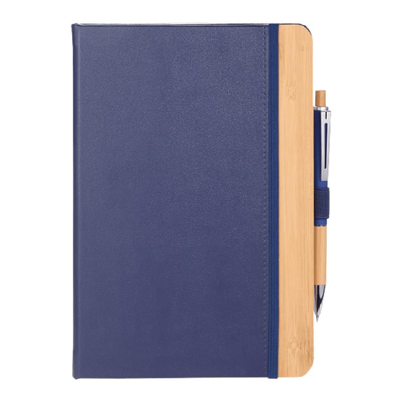 The 5.5" x 8.5" FSC® Recycled Kia Bamboo Journal features a 30% bamboo fiber cover with a bamboo detail on the front. Includes 80 sheets of FSC® recycled paper, back document pocket, ribbon page marker, elastic band closure and pen loop. By choosing this notebook, you're making a positive impact on the environment, as one percent of sales are donated to environmental nonprofits through a partnership with 1% For The Planet.